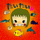 スーパーの魚コーナーに行くと、「たいたい!たいたい!」と大騒ぎ(^^)絵本のクジラやイルカを見ても、ちゃんと「たいたい」と認識してるし、おもちゃの肌色をした切り身も、原色で塗られたド派手な魚も判ってる。大したもんだ。