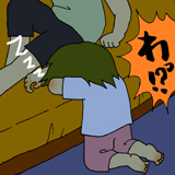 跪いてベッドに突っ伏した状態・・・