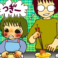 ちょっと自分でさっさと済ませてしまいたかったのですが気付かれては仕方が無い。時間がかかって面倒だとは思いましたが、仕上げのパン粉付けをやってもらうことにしました。