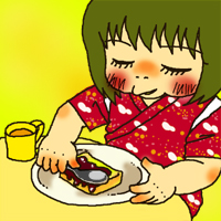 なもんで朝食がパンだったりすると、チョコクリームを塗る甚平姿の取り合わせが妙で微笑ましいです(笑)