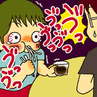 チハルも喜んで食べていたのですが、不意に咳がやって来るので苦しそう・・・麺を噴出すのを我慢する姿は、それはもう辛そうなのですが、「麺を派手に噴出しても良いようなものなのに、この年齢で器用だな~」と妙な感心もしたもんでした(笑)