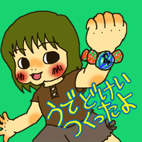 自由に描いた絵を切り取って、腕輪部分のテープに貼り付ければ完成♪